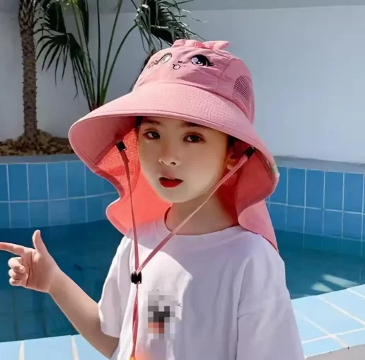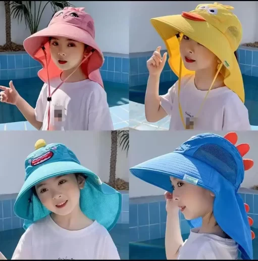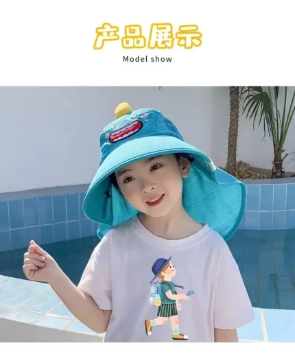 ✅Sombrero de sol de verano para bebé con solapa para el cuello, correa de protección UV, sombreros de playa de ala ancha, sombrero de cubo para niños y niñas al aire libre.